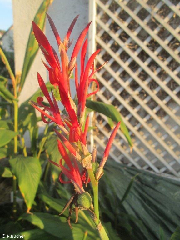 | Familie: | Cannaceae Blumenrohrgewächse | | Synonyme: | Canna gigantea, Canna latifolia |
