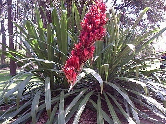 | | Herkunft / Verbreitung: | | Australien (QLD, NSW) | | Habitus: | | immergrüne, langsamwüchsige Pflanze mit grundständigen, bis zu 3m langen und 20cm breiten, aufrechten, lanzettlichen, dunkelgrünen Blättern und bis zu 5m hohen Blütenstielen mit kleinen, zurückgebildeten Blättern und endständigen, bis zu 1m langen, länglichen Blütenständen mit bis zu 6cm langen, rötlich-braunen Einzelblüten. | | Vermehrung: | | Aussaat / Teilung | | Aussaat: |  | die Samen ohne weitere Vorbehandlung nur oberflächlich mit einer Mischung aus Aussaaterde und Sand oder Perlite bedecken, hell und warm (ca. 25°C) aufstellen, sowie konstant leicht feucht (nicht naß!) halten. | | Aussaatzeit: | | ganzjährig möglich | | Topf- / Kübelkultur: | | Doryanthes palmeri bevorzugt während der Sommermonate einen halbschattigen bis sonnigen Standort, auch im Freien. Die Überwinterung sollte hell, bei ca. 5-10°C erfolgen. Während der heißen Jahreszeit sollte in regelmäßigen Abständen, jedoch mäßig gegossen werden, während der Wintermonate ist sporadisch, in größeren Abständen zu gießen, angepaßt an die Überwinterungstemperatur. Das Substrat sollte durchlässig sein, gut geeignet ist eine gute Einheitserde mit einem hohen Anteil Sand oder Perlite/Vermiculite oder eine Mischung aus Einheits- und Kakteenerde. Überschüssiges Wasser sollte schnell ablaufen können. Als Dünger kann dem Substrat im Frühjahr ein Langzeitdünger in niedriger Dosierung beigemischt werden. Doryanthes palmeri verträgt zwar einige Minusgrade, allerdings ist eine Kultur im Kübel bei frostfreier Überwinterung vorzuziehen, da sich die Angaben einer gewissen Frosttoleranz auf die Blätter, jedoch nicht auf die Blüten beziehen.