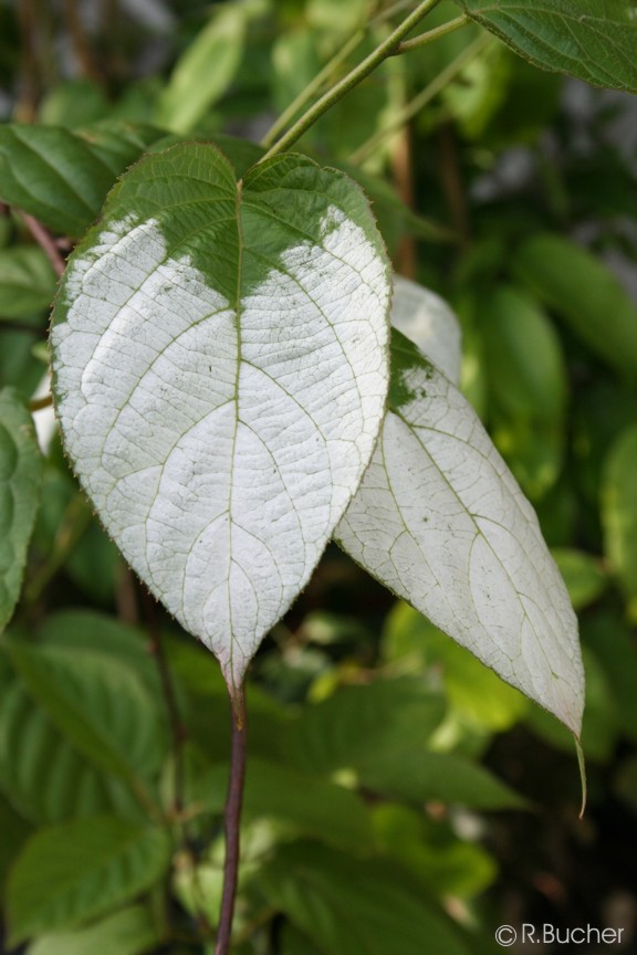 | | Herkunft / Verbreitung: | | China, Japan weite Verbreitung, auch im europäischen Raum | | Habitus: | | mehrjähriger, laubabwerfender, zweihäusiger Schlinger/Ranker bis ca. 6m mit großen, langgestielten, länglich ovalen, spitz zulaufenden, kräftig grünen Blättern, duftenden, weißen bis cremefarbenen Blüten mit gelben Staubblättern und eßbaren Früchten. Auffällig ist die, besonders bei männlichen Pflanzen, in der oberen Blatthälfte auftretende weiße bis rosafarbene Färbung. | | Vermehrung: | | Aussaat / halbreife Stecklinge im Sommer | | Aussaat: |  | | | Aussaatzeit: | | | | Topf- / Kübelkultur: | |