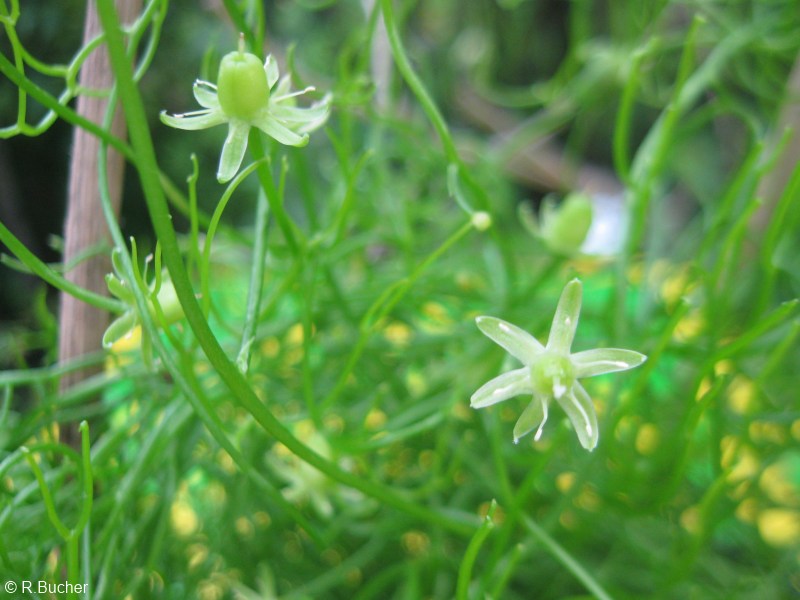 | | Herkunft / Verbreitung: | | Südafrika, Zimbabwe, Tansania u.a. | | Habitus: | | mehrjährige, windende Zwiebelpflanze bis ca. 4m mit unbelaubten oder, seltener, mit zu winzigen Schuppen reduzierten Blättern besetzten, fleischigen, kräftig grünen Zweigen und langgestielten, ca. 1cm großen, sternförmigen, grünlichen Blüten. Die Zwiebel dieser interessanten Pflanze kann einen Durchmesser bis zu 25cm erreichen! Während der Ruhezeit (Trockenzeit) zieht Bowiea volublis oberirdisch ein! | | Vermehrung: | | Aussaat / Ableger (Brutzwiebeln) | | Aussaat: |  | die kleinen Samen nur oberflächlich in eine Mischung aus Aussaaterde und Sand oder Perlite (alternativ in Kokohum) auslegen, hell und warm (23-25°C) aufstellen, sowie konstant leicht feucht (nicht naß!) halten. | | Aussaatzeit: | | ganzjährig möglich | | Topf- / Kübelkultur: | | Bowiea volubilis bevorzugt während der Sommermonate einen hellen, warmen Standort. Die Überwinterung kann dunkler, bei ca. 5-10°C erfolgen. Die Kletterzwiebel reagiert, als sukkulente Pflanze, auf Staunässe sehr empfindlich, daher sollte in der heißen Jahreszeit zwar regelmäßig, jedoch immer nur in kleinen Mengen gegossen werden. Während der Wintermonate sollte nicht gegossen werden. Als Substrat eignet sich eine gute Einheitserde mit einem hohen Anteil Sand oder Perlite/Vermiculite, um eine gute Durchlässigkeit zu gewährleisten. Für eine gute Drainage sollte ebenfalls gesorgt werden. Als Dünger kann ein Langzeitdünger in niedriger Dosierung eingesetzt werden.