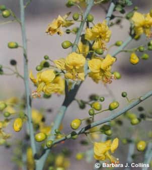 | Familie: | Leguminosae (Fabaceae) Hülsenfrüchtler (Schmetterlingsblütler) | | Synonyme: | Cercidium torreyanum, Parkinsonia florida |