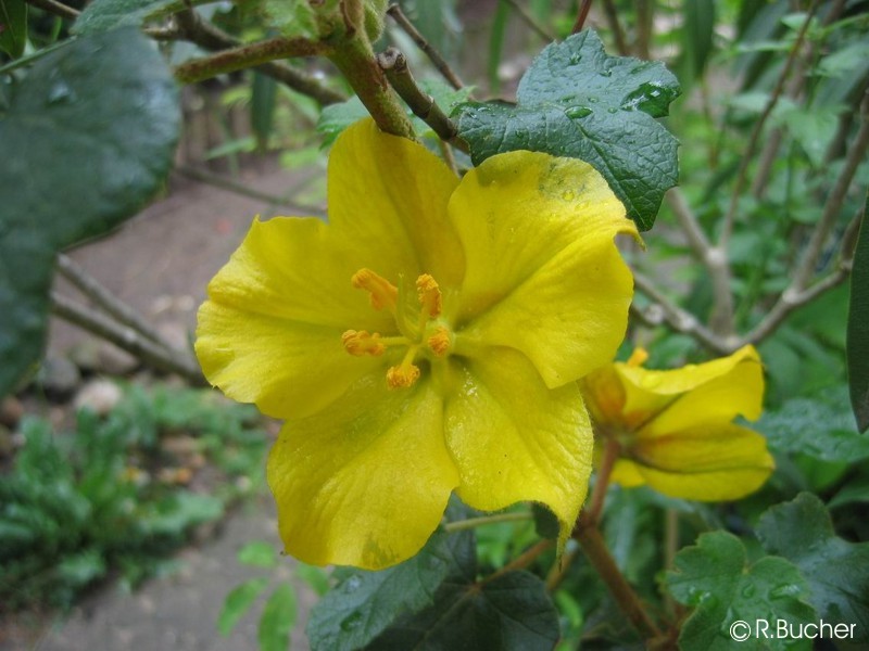 | Flanellstrauch, California Flannel Bush |  | Berührungen der mit feinen Härchen besetzten Zweige und Blattunterseiten können bei empfindlichen Personen zu Hautreizungen führen ! |