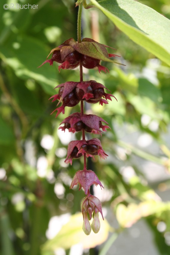 | | Herkunft / Verbreitung: | | SW-China, Himalaya | | Habitus: | | laubabwerfender Strauch bis 2m mit aufrechten, bambusartigen, hohlen Trieben, leicht überhängenden Zweigen und bis zu 15cm langen, elliptischen, oberseits dunkelgrünen Blättern. Die sehr attraktiven, leicht duftenden, weißen, glockenförmigen Blüten, umgeben von purpurroten Hüllblättern, erscheinen in langen, hängenden Trauben. Aus den Blüten entwickeln sich kleine, purpurrot-schwarze Beerenfrüchte. | | Vermehrung: | | Aussaat / Stecklinge / Teilung | | Aussaat: |  | die feinen Samen sollten vor der Aussaat im Frühjahr ca. 4-6 Wochen stratifiziert werden, bessere Keimerfolge werden erzielt, wenn die Samen im Herbst in ein Frühbeet ausgesät werden, die Keimung erfolgt dann in der Regel im darauffolgenden Frühjahr | | Aussaatzeit: | | Frühjahr / Herbst | | Topf- / Kübelkultur: | | Leycesteria formosa ist als Kübelpflanze recht anspruchslos, im Sommer wird ein halbschattiger bis sonniger Standort bevorzugt, die Überwinterung kann kühl und dunkel erfolgen. Während der Sommermonate sind regelmäßige Wassergaben erwünscht, in den Wintermonaten ist das Gießen stark einzuschränken. Als Substrat eignet sich eine gute Einheitserde mit einem Anteil Sand oder Perlite/Vermiculite oder Lehm, als Dünger kann ein Langzeitdünger eingesetzt werden. Da Leycesteria formosa Temperaturen bis -18°C ohne Schaden verträgt ist ein Auspflanzen dieser attraktiven Pflanze im Garten möglich und durchaus empfehlenswert.